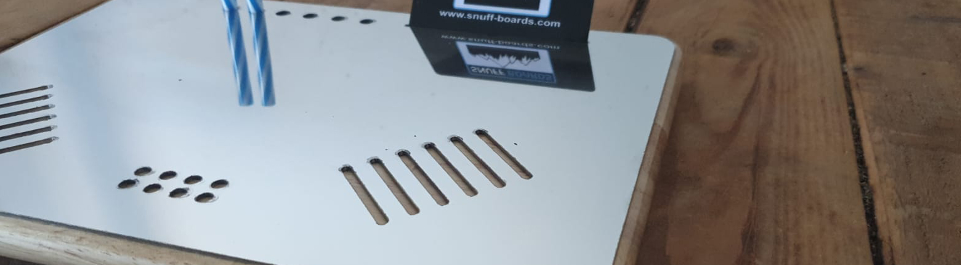 Beware of imitation products! Some similar snuff boards have poor quality card holders, no tube holders, badly machined surfaces or splintery wooden bases. Look out for the original SNUFF BOARDS logo.